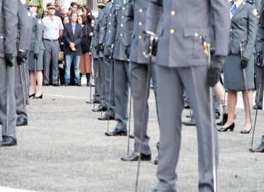 Durante a formatura, os cadetes deixam seus espadins de lado e recebem a espada. A arma acompanhará os aspirantes em um estágio de seis meses.