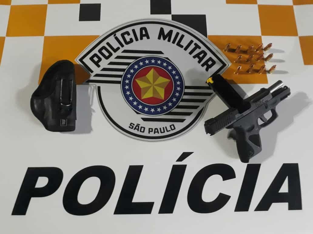 Em buscas no interior da cabine foi localizado dentro de uma mala de viagem que estava sobre a cama, uma pistola Taurus G2c de 3 polegadas, calibre 9 milímetros, municiada e carregada e com numeração.