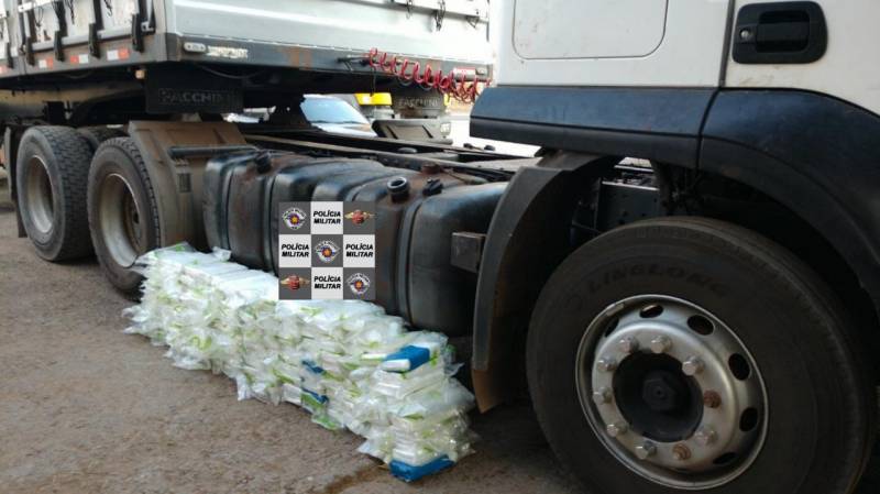 Foi realizada abordagem de fiscalização e notou-se que a carroceria estava com remendos. Considerando que a carreta não transportava nenhuma carga, os policiais suspeitaram de que havia algo de ilícito.