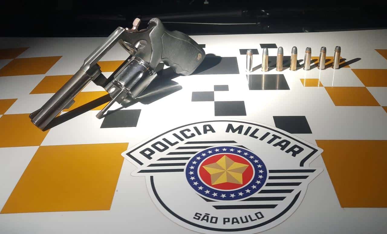 Ao saírem do veículo os policiais rodoviários visualizaram um volume na cintura do condutor e ao ser realizado a busca pessoal, localizaram um revólver calibre 38 com a numeração suprimida e carregado com 6 (seis) cartuchos intactos, além de uma munição em seu bolso.