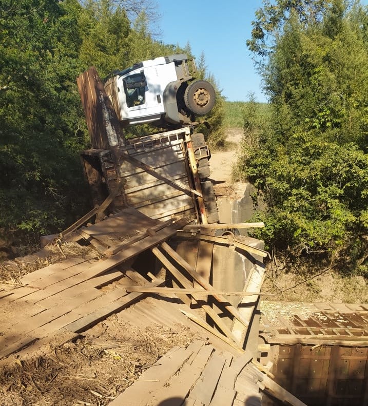 Uma ponte de madeira localizada no bairro Pitanga, na área rural entre o Distrito de Assistência e o Distrito de Tanquinho, Piracicaba, caiu na manhã deste sábado (29), após um caminhão de cana de açúcar tentar atravessá-la.
