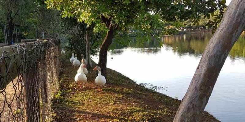 Questionado pela reportagem, o secretário responsável pela pasta, Emílio Cerri, afirma que há sete gansos presentes no Lago Azul, convivendo com inúmeras espécies de aves selvagens. Os gansos são considerados domésticos e precisam de intervenção humana para alimentar-se: “Temos hoje garças, tatuís, patos que se alimentam por conta própria, não são domesticados, são selvagens. Apenas alimentamos os animais domesticados, que dependem da intervenção humana para sobreviverem”, pontua.