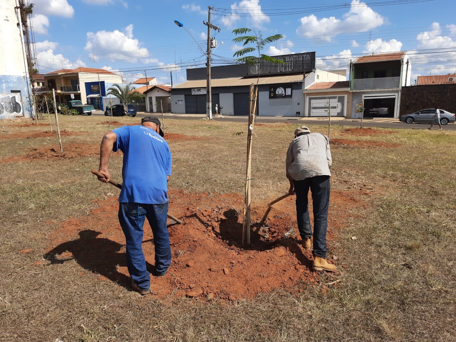 A Secretaria Municipal de Agricultura realizou na sexta-feira (22) o plantio de mudas de árvores nativas no espaço verde localizado entre a Avenida dos Costas e a Rua 11 JP, no Jardim Palmeiras.