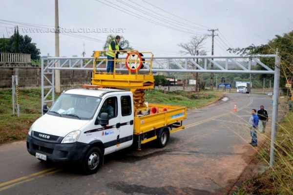 Limitador de altura foi instalado nesta quinta-feira (17) pela prefeitura de Rio Claro na Rua Batista Russo, próxima à divisa com Santa Gertrudes. A partir da instalação do equipamento, não é permitido o tráfego de veículos com mais de 2,90 metros nos dois sentidos da via.
