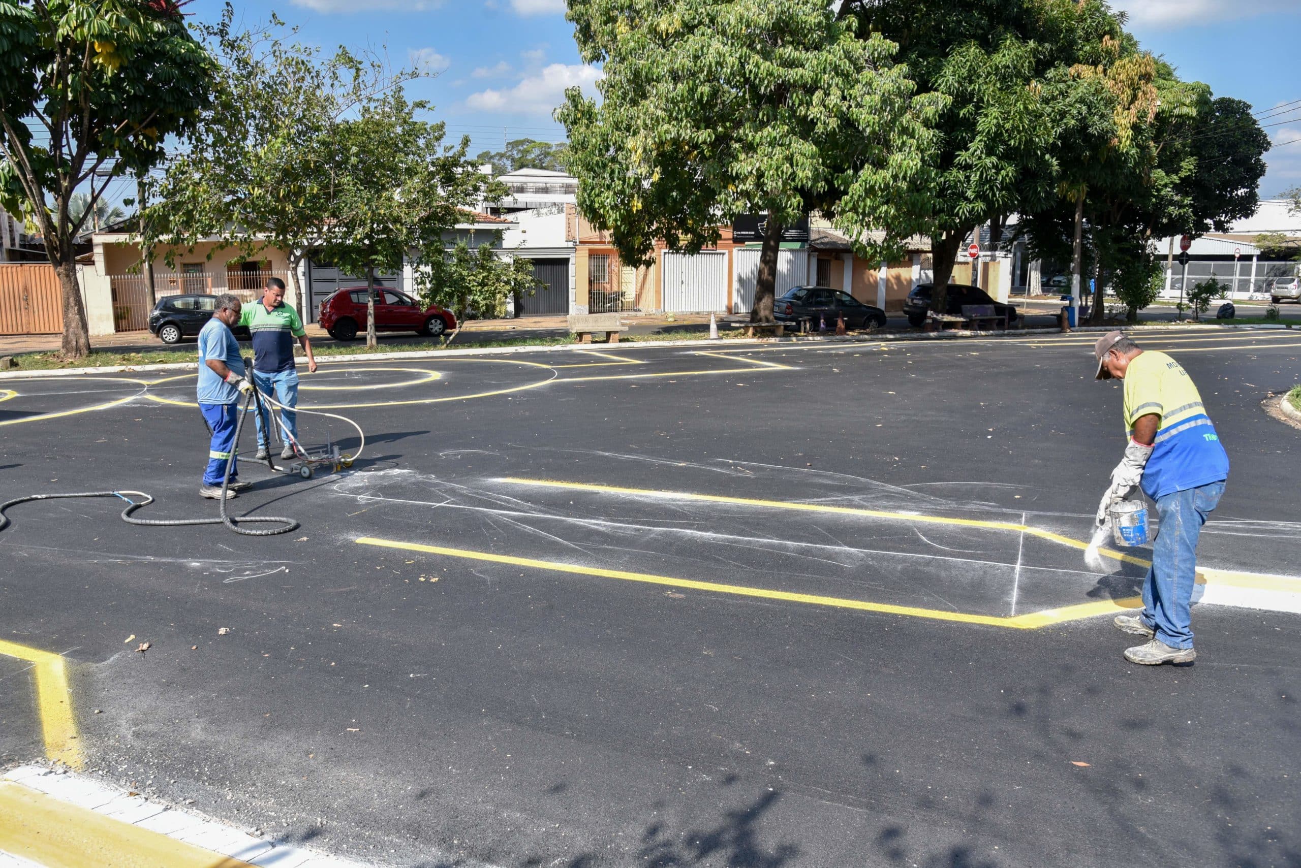 Além da pintura de solo, o trabalho da Secretaria Municipal de Mobilidade Urbana e Sistema Viário inclui colocação e reforma de placas de trânsito, suavização de valetas, recapeamentos e implantação de asfalto em trechos de vários bairros.