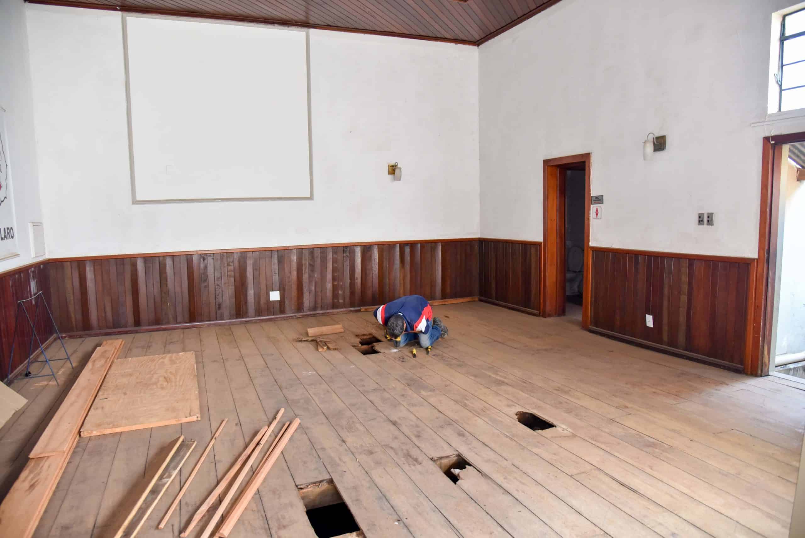 Nesta primeira etapa estão sendo substituídas partes do madeiramento, das telhas e das calhas, num investimento de R$ 70 mil. Numa segunda etapa, serão feitas a colocação de gesso do ambiente interno e a pintura do prédio.
