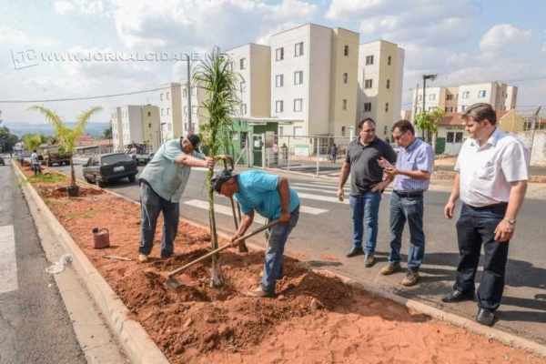 Prefeitura planta palmeiras em trecho no Jardim Araucária