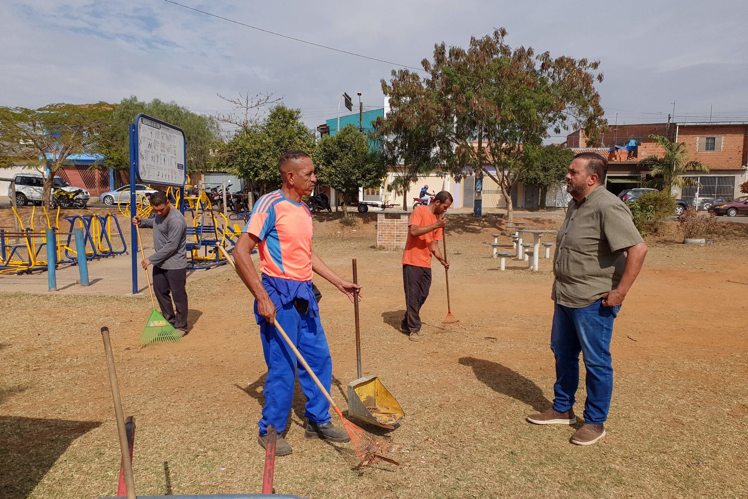 No Jardim Novo Wenzel, as equipes realizaram limpeza e corte de mato e grama, além de limpeza e pintura de guias e, no playground do bairro, foi realizada colocação de areia.