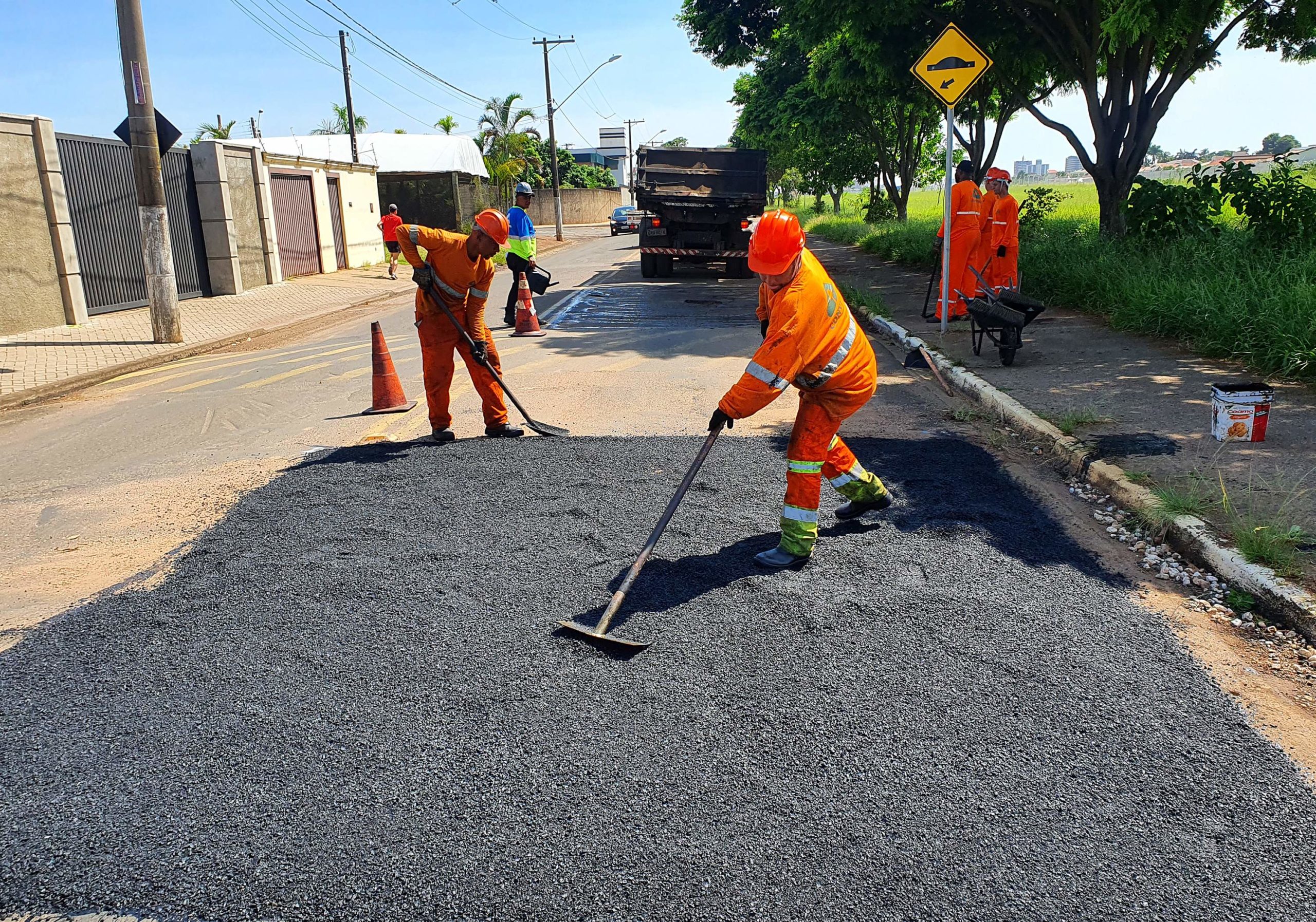 Equipes de manutenção trabalham nesta segunda-feira (28) na recuperação do pavimento asfáltico em vários bairros de Rio Claro.