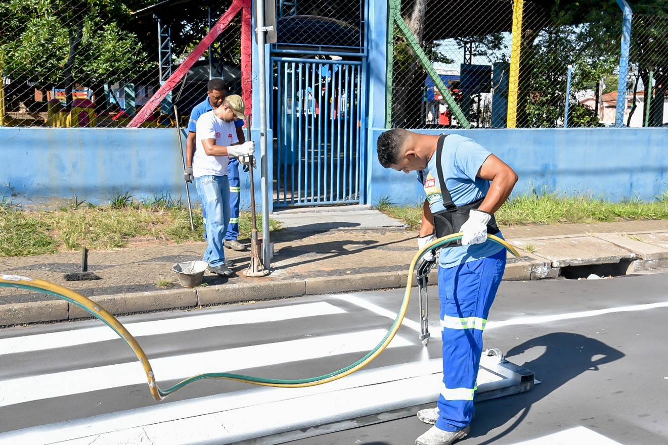 O entorno e proximidades da escola Dom Pedro I, no bairro Vila Alemã, receberam neste sábado (5) serviços da prefeitura de Rio Claro voltados à segurança no trânsito.