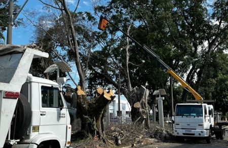 De acordo com a Prefeitura de Rio Claro, a Secretaria Municipal de Serviços Públicos está removendo árvores que secaram e colocavam em risco a segurança de pedestres e condutores que transitam por aquele trecho. O local, durante a execução dos trabalhos, ficou interditado.