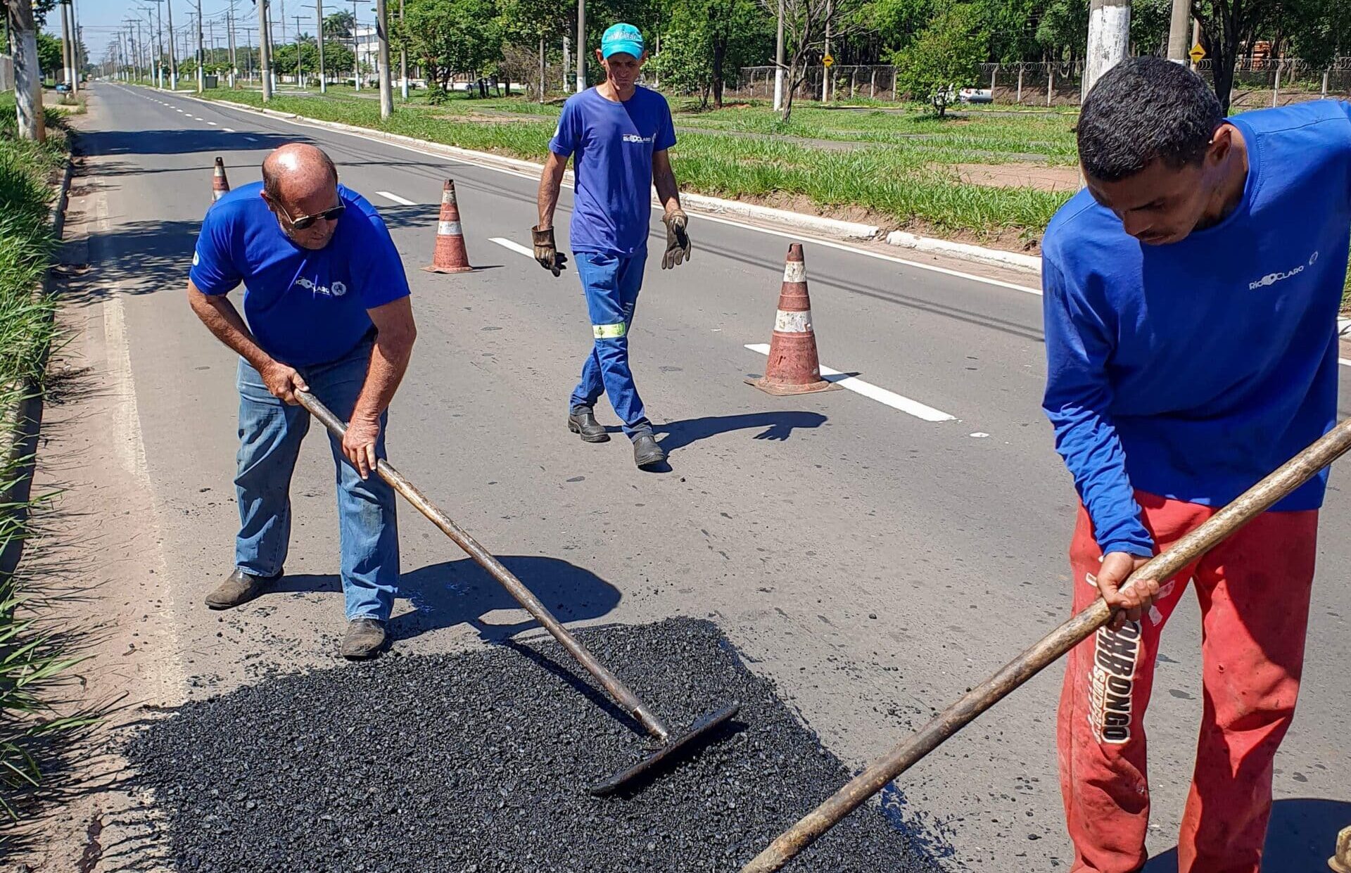 A prefeitura de Rio Claro realizou nesta segunda-feira (11) serviços de tapa-buracos em trechos da Rua 3-A.