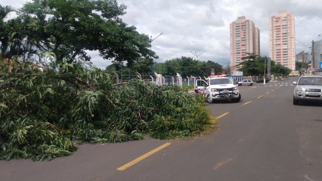 Na manhã deste domingo (17), equipes da Defesa Civil e da Secretaria Municipal de Agricultura trabalharam para remover uma árvore que caiu na Avenida 42, atrás do Lago Azul.