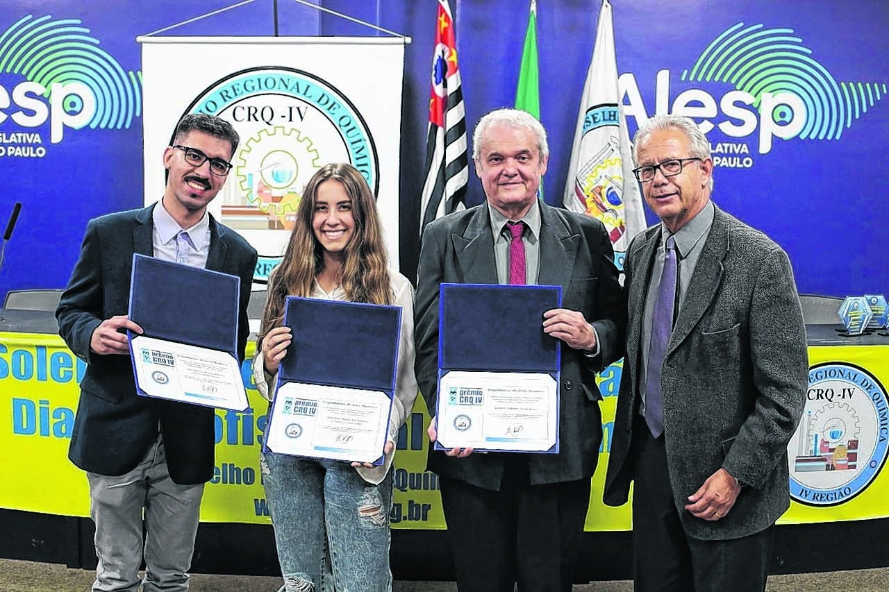 “Ligninas: Fotoproteção de Corantes e Oxidação para Obtenção de Quelantes”, pesquisa produzida pelos estudantes Tárik Chaves Taha e Ana Júlia Traiba da Silveira, com orientação do Prof. Dr. Adilson Roberto Gonçalves, do curso de Engenharia Ambiental da Universidade Estadual Paulista Júlio de Mesquita Filho (Unesp) Câmpus Rio Claro, foi a ganhadora na modalidade Engenharias da Área Química. Esta é a quinta vez que o professor Adilson Gonçalves ganha o Prêmio CRQ-IV na condição de orientador: nos anos de 2002, 2004 e 2006, quando atuava na Faculdade de Engenharia Química de Lorena; e em 2005, na modalidade Química de Nível Médio, quando trabalhou com alunos do Colégio Técnico de Lorena Prof. Nelson Pesciota, instituição que também possui o Selo de Qualidade CRQ-IV.