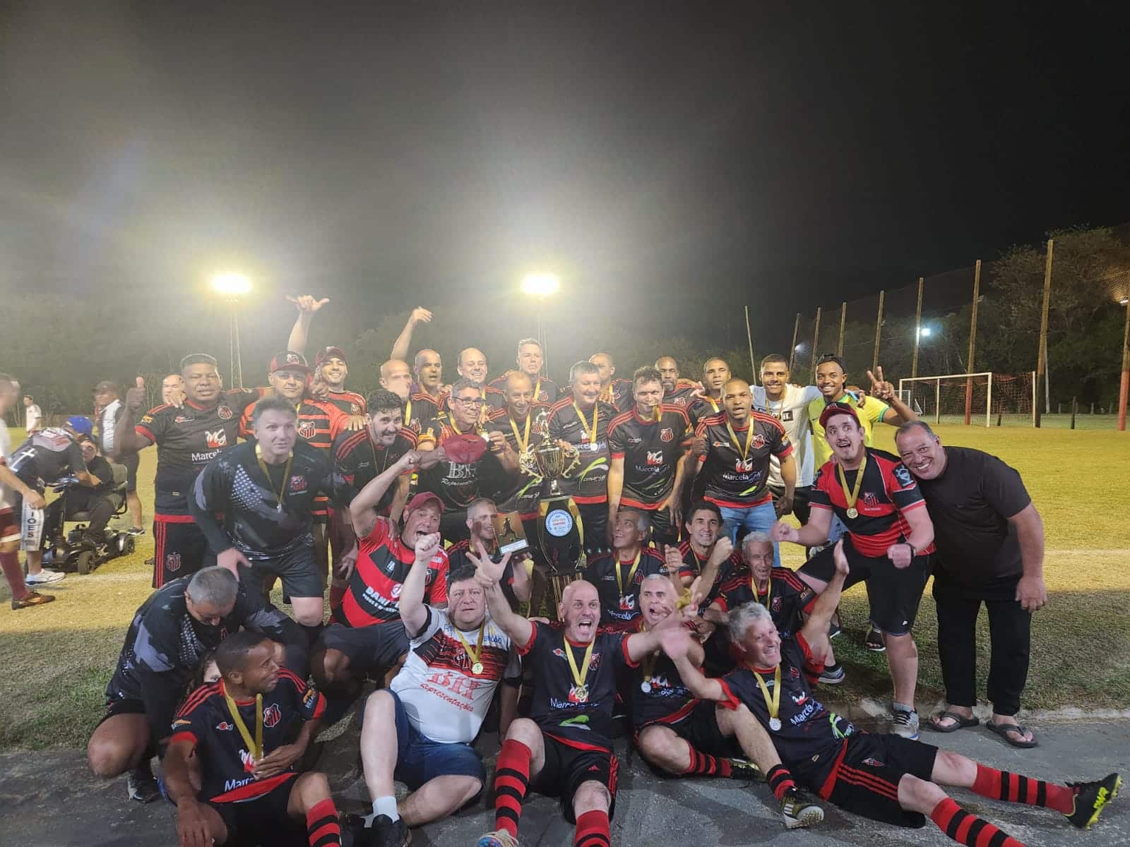 Equipe do Cidade Nova FC celebra a conquista do título no Máster 5.0
