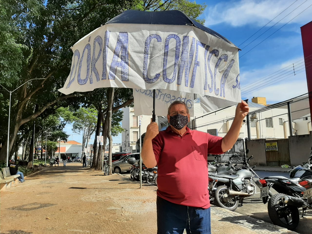 Na manhã desta segunda-feira (24), o professor aposentado José Carlos dos Santos, 70 anos, realizou um protesto na área Central de Rio Claro contra o desconto previdenciário em sua aposentadoria. Segundo conta, desde 2020, o governo do Estado tem descontado entre 12% e 16% sobre as aposentadorias e pensões de servidores estaduais.