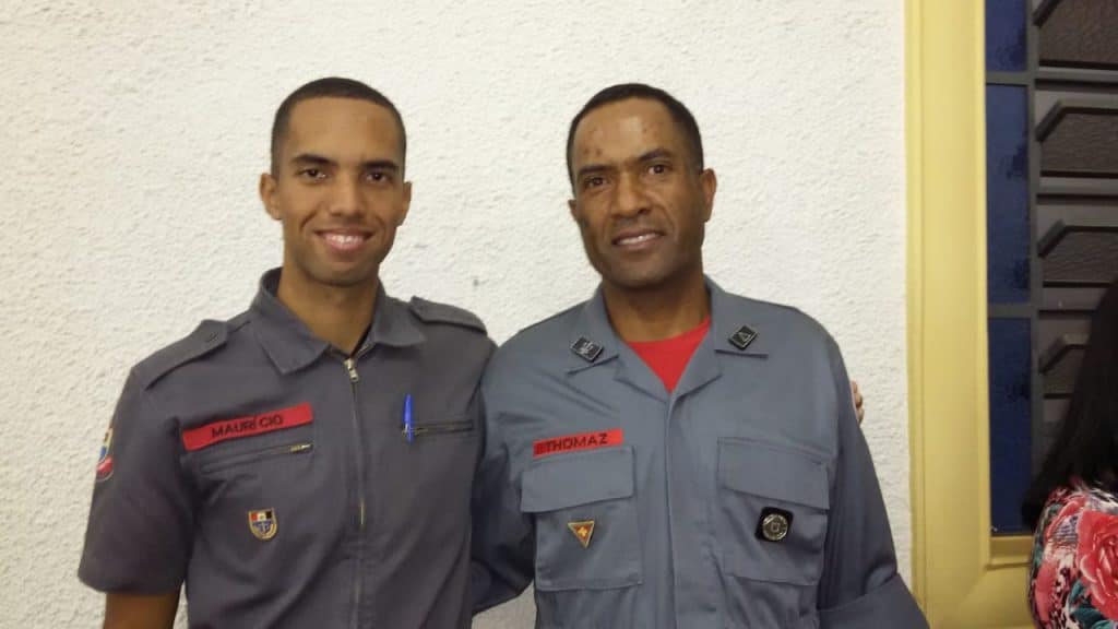 Com menos tempo (há cinco anos) atuando no Corpo de Bombeiros mas não menos apaixonado, o soldado Maurício Thomaz traz no sangue a vocação pela farda. Neto e filho de bombeiros, ele cresceu com os exemplos ao lado: “Não tinha a intenção de ser militar em si, mas sempre sonhei em ser bombeiro. O militarismo só trazia mais brilho ao bombeiro, com disciplina e tudo mais. Em cada fase da minha vida até tentei me imaginar em outras profissões, mas o desejo de ser bombeiro sempre falou mais alto. Meu pai sempre me deixou à vontade, nunca me obrigou a seguir os passos dele. Mas eu, por amor, por ver meu pai trabalhar e ver que ele era bom naquilo e a população aplaudia, me dava mais vontade”, relata o soldado.