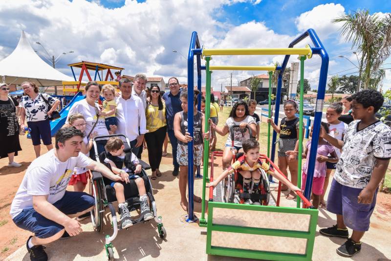 Esse é o primeiro Espaço Família com brinquedo inclusivo, destinado a crianças com deficiência. “Os demais espaços que vamos implantar seguirão esse modelo inclusivo”, informou Juninho. Além do brinquedo adaptado para crianças com deficiência, o local possui playground, academia ao ar livre, quadra esportiva e ampla área de lazer.