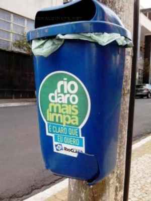 Na Rua 3, uma lixeira apresenta rachaduras, embora esteja funcional. Ela é uma das 100 lixeiras instaladas pela administração municipal no Centro de Rio Claro no fim de dezembro de 2013.