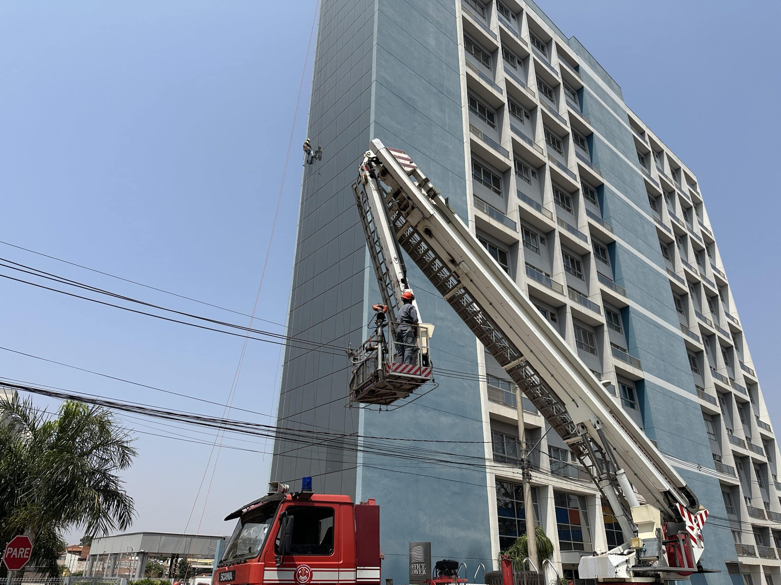 Diante do ocorrido o Corpo de Bombeiros foi acionado: “O prédio no total tem uns 50 metros. Encontramos o trabalhador mais ou menos a uns 30 metros de altura. Enquanto montávamos o nosso equipamento para realizar o resgate o vento parou e o trabalhador conseguiu se desvencilhar e voltar a conseguir descer. Uma ocorrência de salvamento em altura que terminou da melhor forma possível”, afirmou o tenente Olivato do Corpo de Bombeiros.