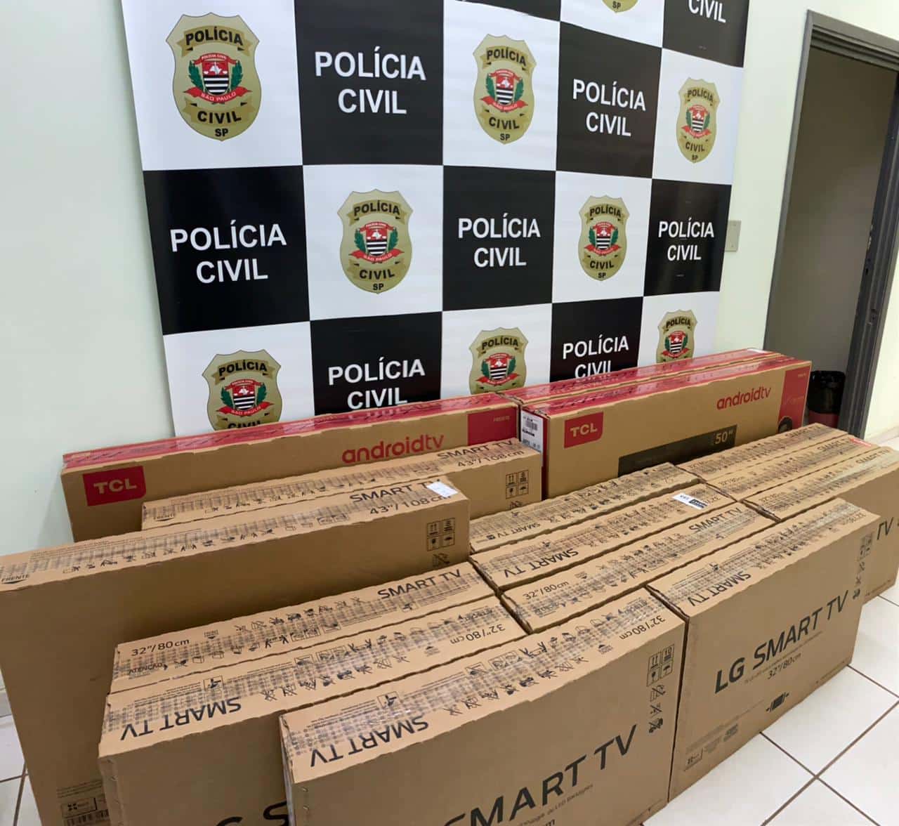 Além das televisores, os policiais apreenderam o celular do investigado e um veículo Fiorino.