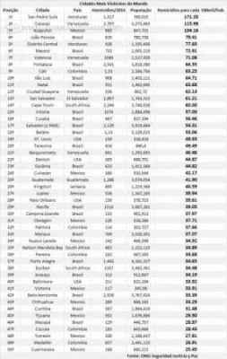 O “ranking”, divulgado nesta semana, que coloca 19 cidades brasileiras entre as mais violentas do mundo, através do índice de homídios para cada 100 mil habitantes, parece distante da realidade do rio-clarense, porém passa a fazer sentido ao se saber que em Rio Claro, no ano passado, a taxa foi de 20,26 assassinatos para cada 100 mil habitantes. Em 2013, foi de 24,10.