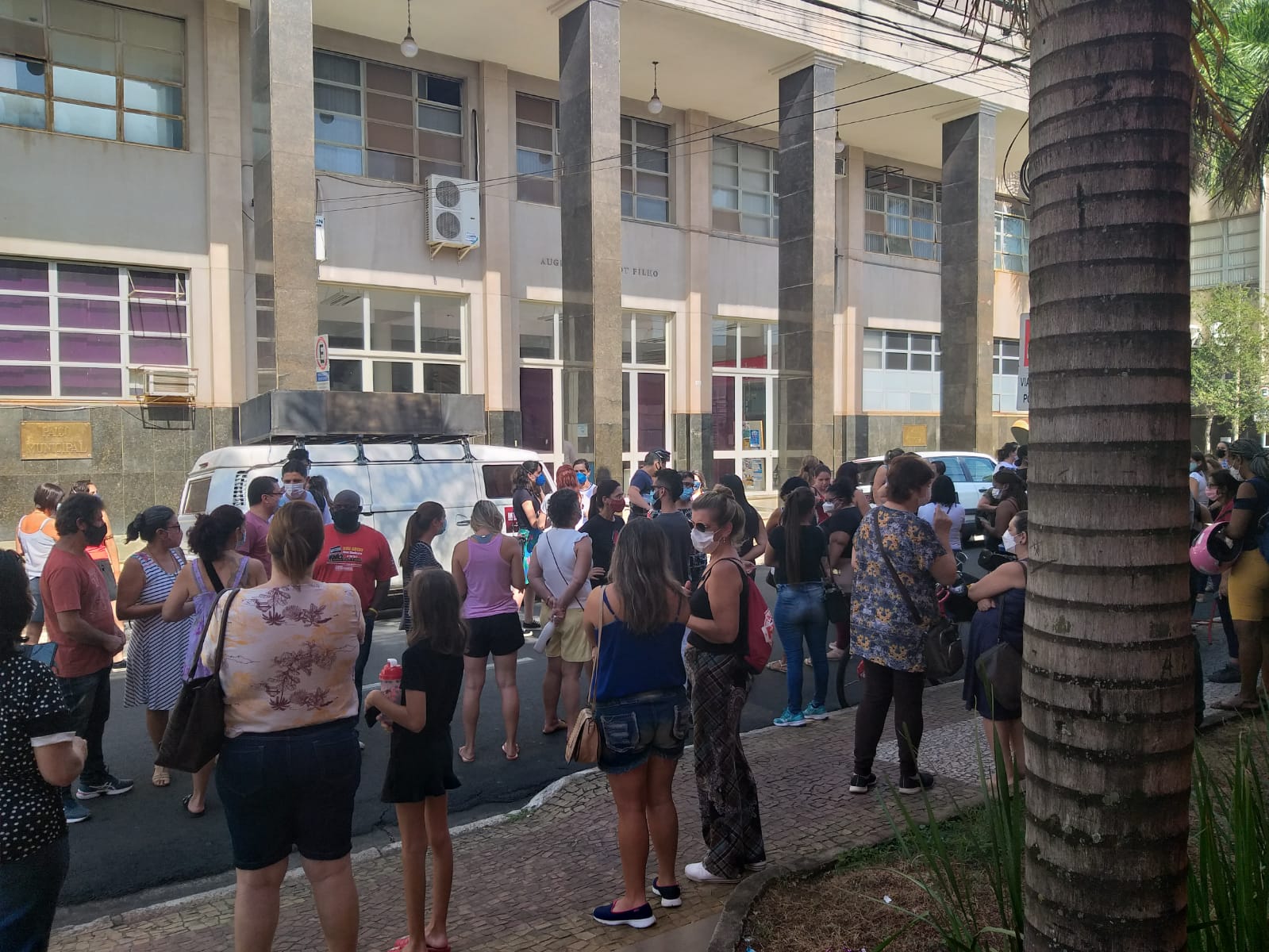 Servidores municipais de Rio Claro estão reunidos nesta manhã de quarta-feira (02) em frente ao Paço Municipal, na Rua 3, no Centro, para protestar contra o índice de reajuste salarial de 8% apresentado pelo prefeito Gustavo Perissinotto e aprovado pela Câmara Municipal.
