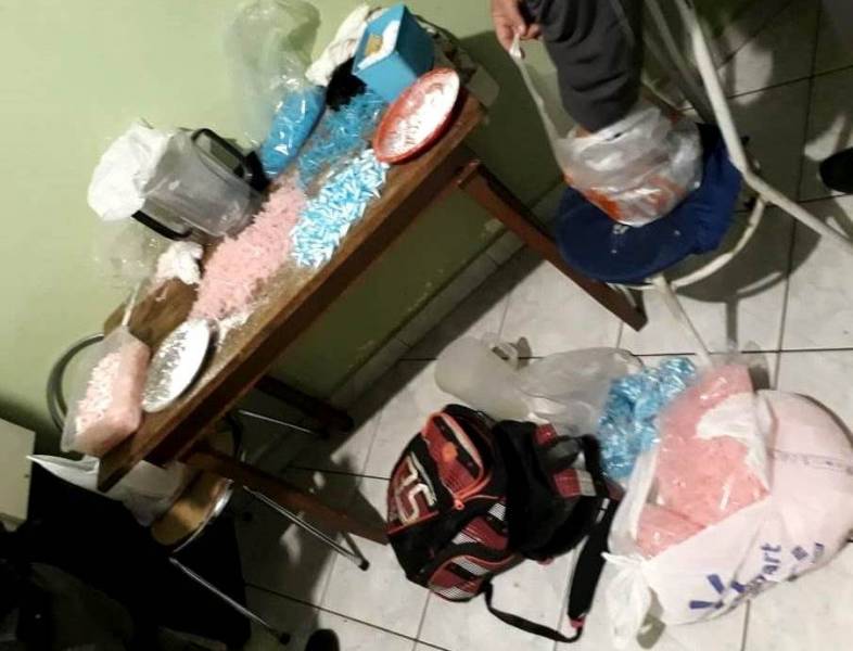 No local foram encontrados 1.252 pinos de cocaína, 695 gramas da droga pura, 50 gramas de cocaína dentro de um liquidificador, 3 mil eppendorfs vazios (embalagens plásticas usadas por traficantes para acondicionar o material), R$ 677,50, além de dois aparelhos celulares.