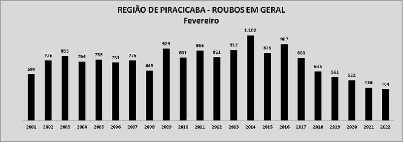 A região de Piracicaba terminou o mês de fevereiro com redução nos roubos em geral e a bancos. Os indicadores de latrocínios permaneceram estáveis.