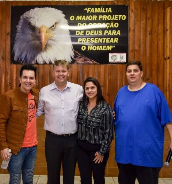 O prefeito João Teixeira Junior, o Juninho da Padaria, destaca o trabalho do Projeto Despertai, liderado por Geraldo Gandolpho, e agradece ao cantor Régis pela apresentação em Rio Claro.