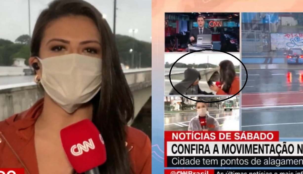 A repórter Bruna Macedo, da CNN Brasil, levou um susto ao vivo na manhã deste sábado (27), durante uma cobertura sobre as chuvas em São Paulo.