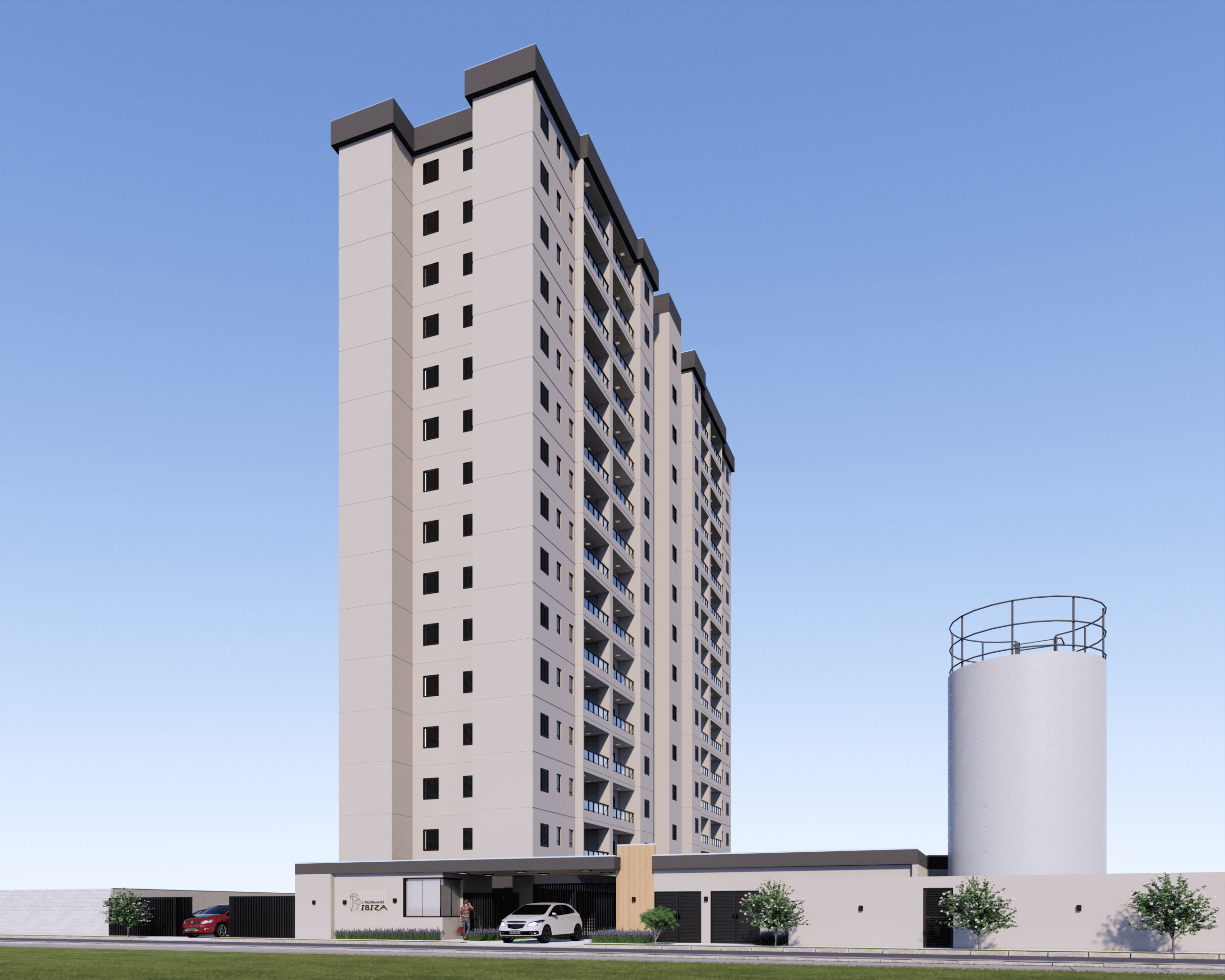 Além da excelente localização, pertinho da Rua 14 e da Av. 38, o Ibiza se destaca por ter plantas de 2 dormitórios com suíte e varanda ampliada com área de serviço externa, distribuídos em 56 m².  Outro diferencial é a presença de vagas cobertas para algumas unidades e depósito privativo para todas.