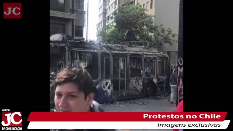 Confira imagens feitas por grupo de jovens rio-clarenses que presenciou momentos de tensão na capital chilena, Santiago. Vídeos registrados pelo grupo mostram manifestantes e representantes do exército nas ruas do país.