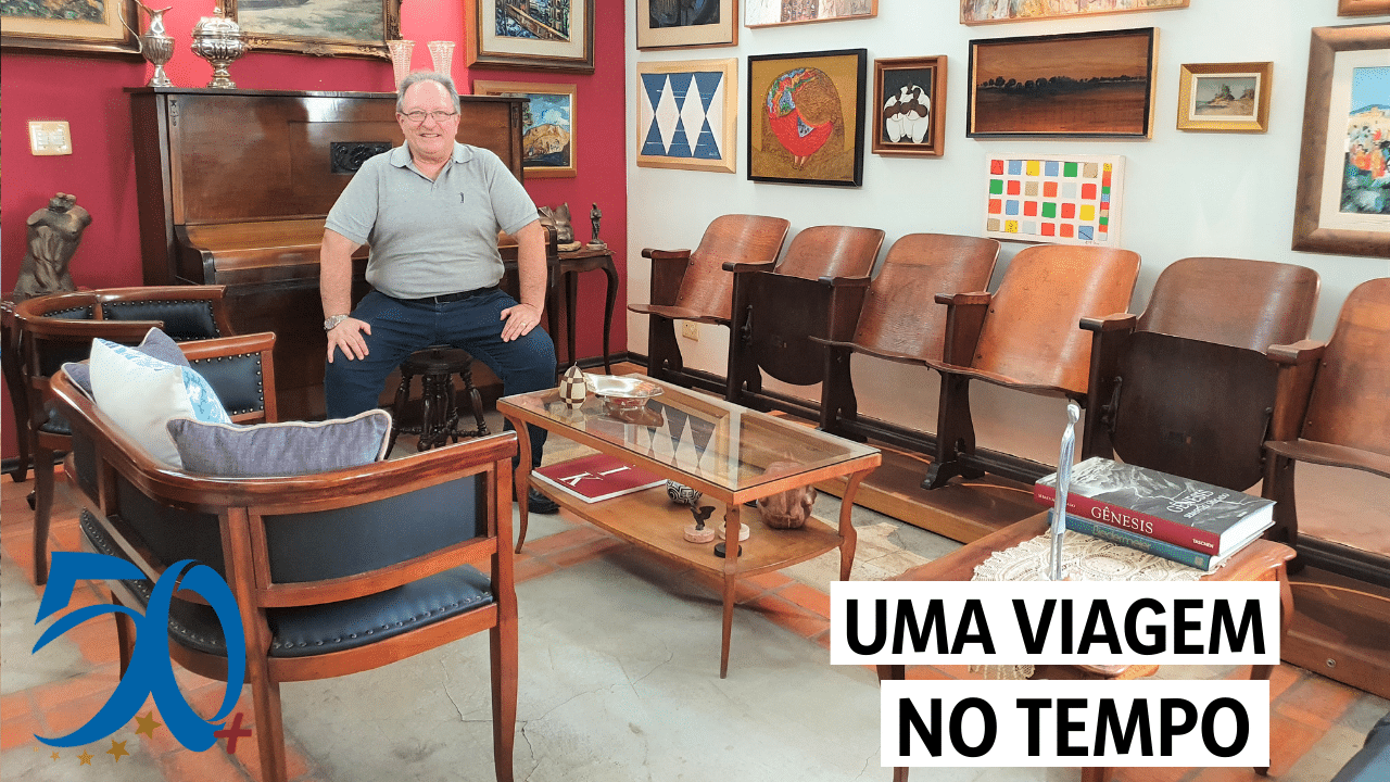 Psicólogo e Coach por formação, o colecionador abriu as portas de sua casa ao 50+ para apresentar materiais raros, como quadros, esculturas, e também peças antigas como TVs, ventiladores, máquinas de escrever, máquinas fotográficas, termômetros, prensa, móveis e muito mais.