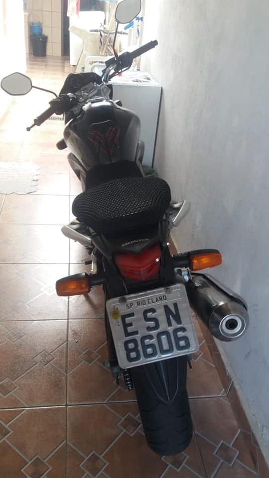 Vinicius foi até à delegacia e registrou um Boletim de Ocorrência. Agora, ele pede ajuda para encontrar sua CB 300 na cor azul com a placa ESN 8606.
