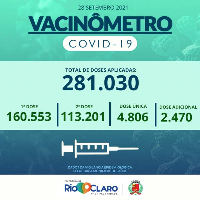 Levantamento divulgado nesta terça-feira (28) pela Secretaria de Saúde de Rio Claro aponta que até o momento o município vacinou 165.359 pessoas contra a Covid, ou seja, 78,91% dos rio-clarenses. Deste total, 118.007 pessoas, ou seja, 56,31% da população, receberam as duas doses da vacina ou vacina de dose única.