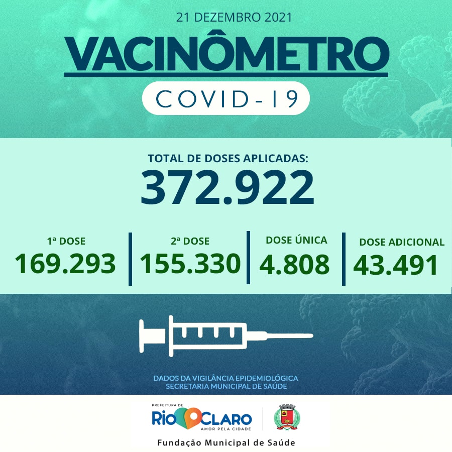 Números da vacinação contra a Covid em Rio Claro, divulgados nesta terça-feira (21) pela Fundação Municipal de Saúde, apontam que 174.101 pessoas foram vacinadas no município nesta campanha de imunização. O número equivale a 83,08% da população.