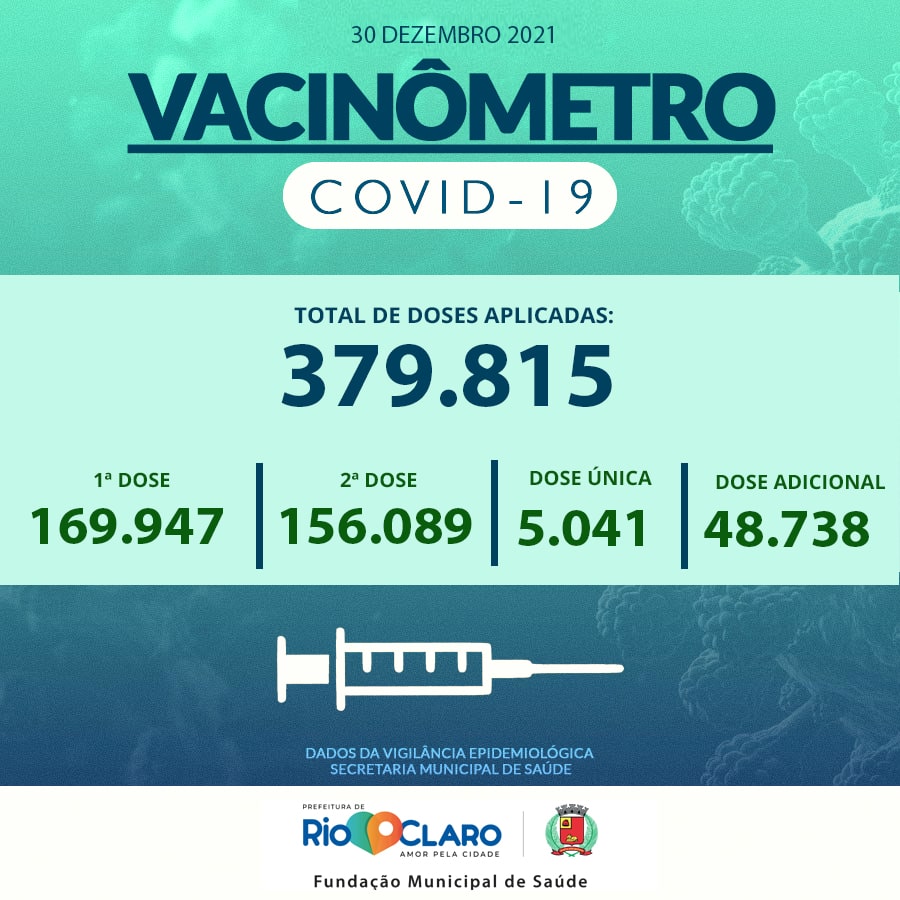 Números da vacinação contra a Covid em Rio Claro, divulgados nesta quinta-feira (30) pela Fundação Municipal de Saúde, apontam que 174.988 pessoas foram vacinadas no município nesta campanha de imunização. O número equivale a 83,5% da população.