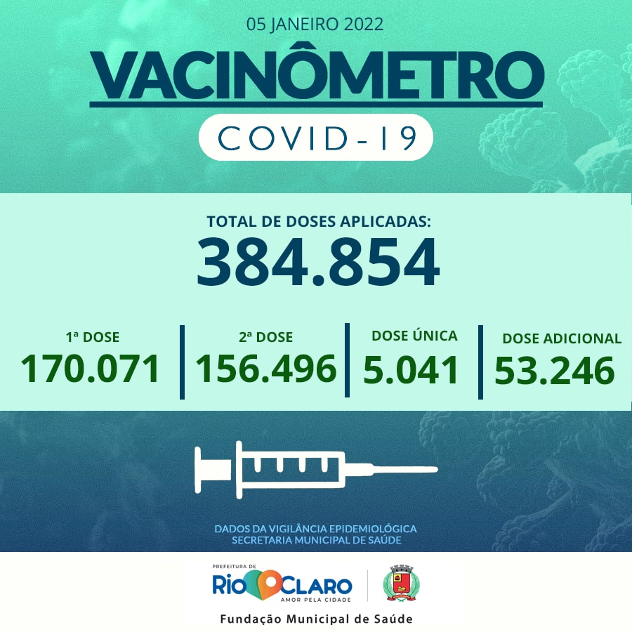 O total de pessoas vacinadas com ao menos uma dose é de 175.112, o que equivale a 83,56% da população. E 25,4% dos rio-clarenses tomaram também a dose de reforço. O total de doses aplicadas desde o início da campanha de vacinação é de 384.854.