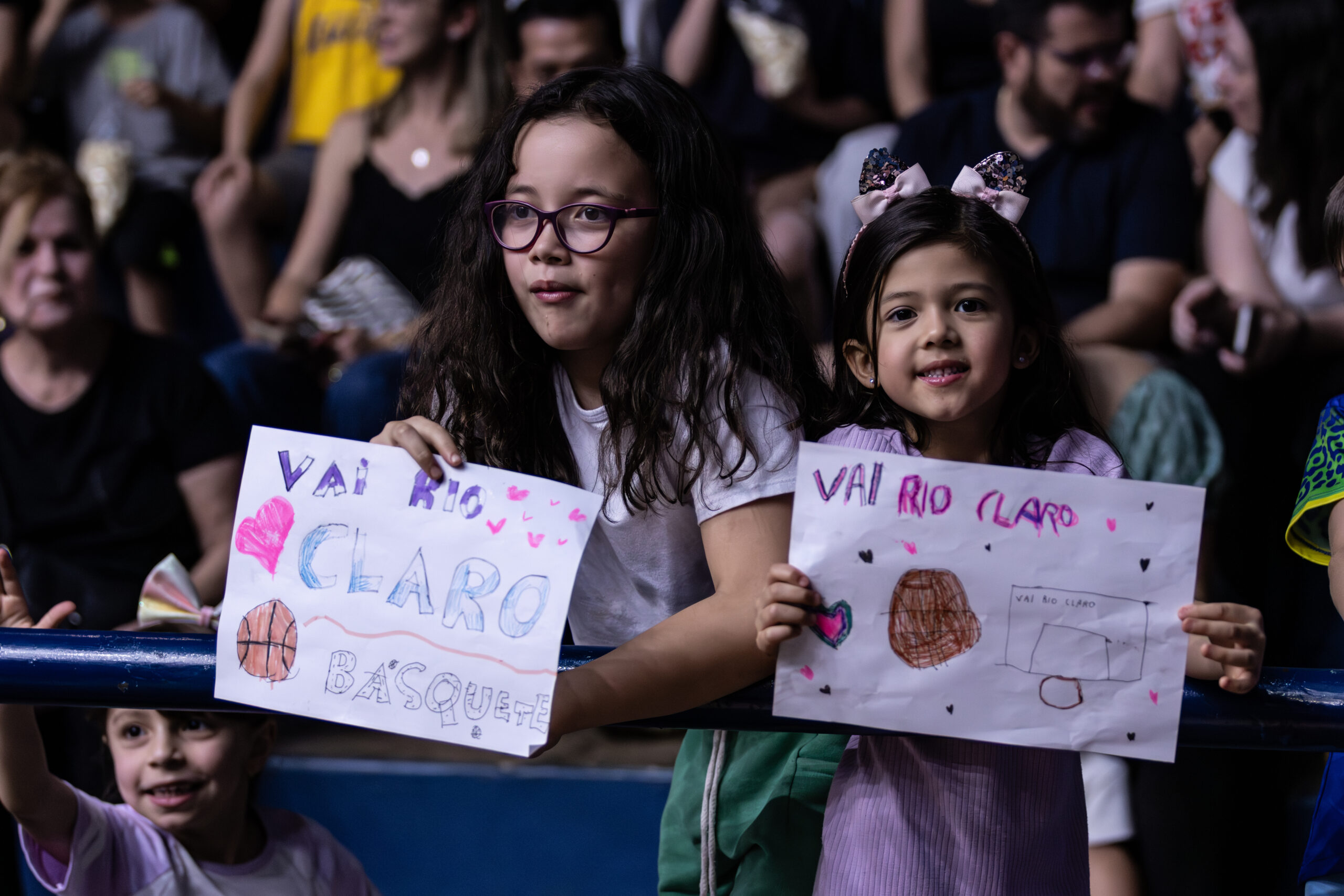 Torcedoras mirins do Rio Claro Basquete , acompanhando equipe no Ginásio Felipe Karan. Foto: Guilherme Figueiredo
