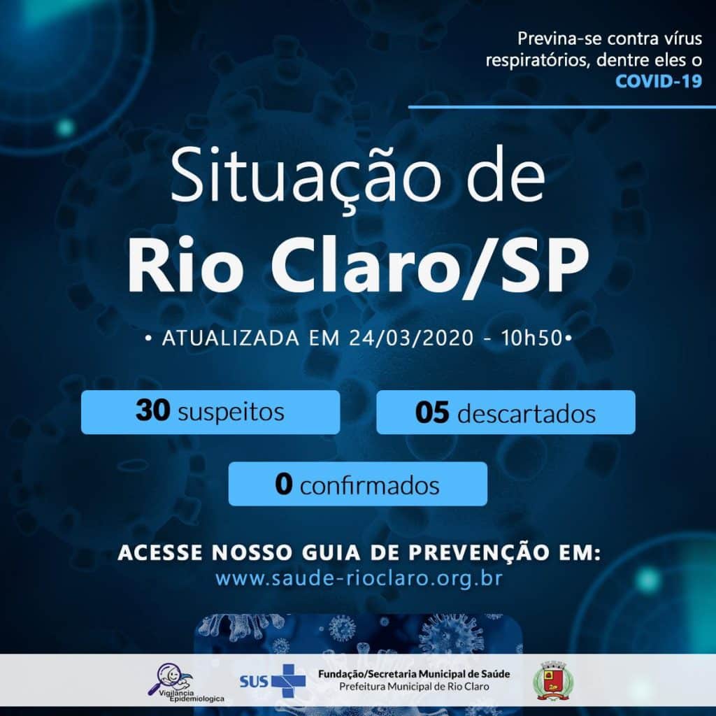 A cidade de Rio Claro chegou nesta terça (24) a 30 casos suspeitos de Coronavírus. A informação foi divulgada pela Prefeitura Municipal, que ressalta não haver confirmação da doença no município até o momento.