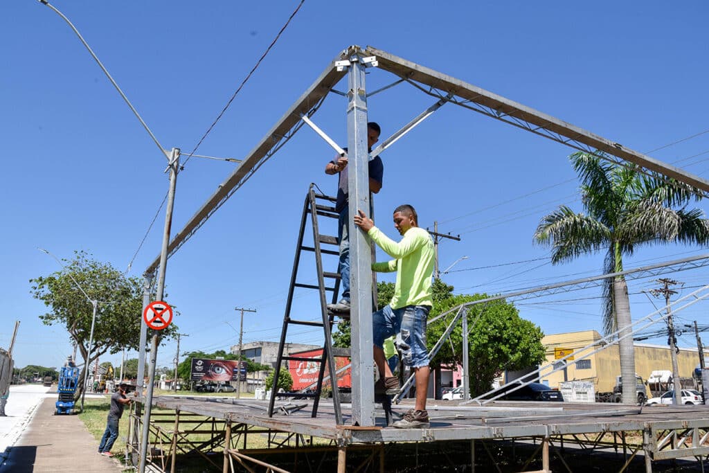 No espaço entre o Jardim América e o Jardim Floridiana, na Avenida Brasil, uma ampla estrutura está sendo montada para receber as milhares de pessoas de Rio Claro e região que assistir aos desfiles das escolas de samba.