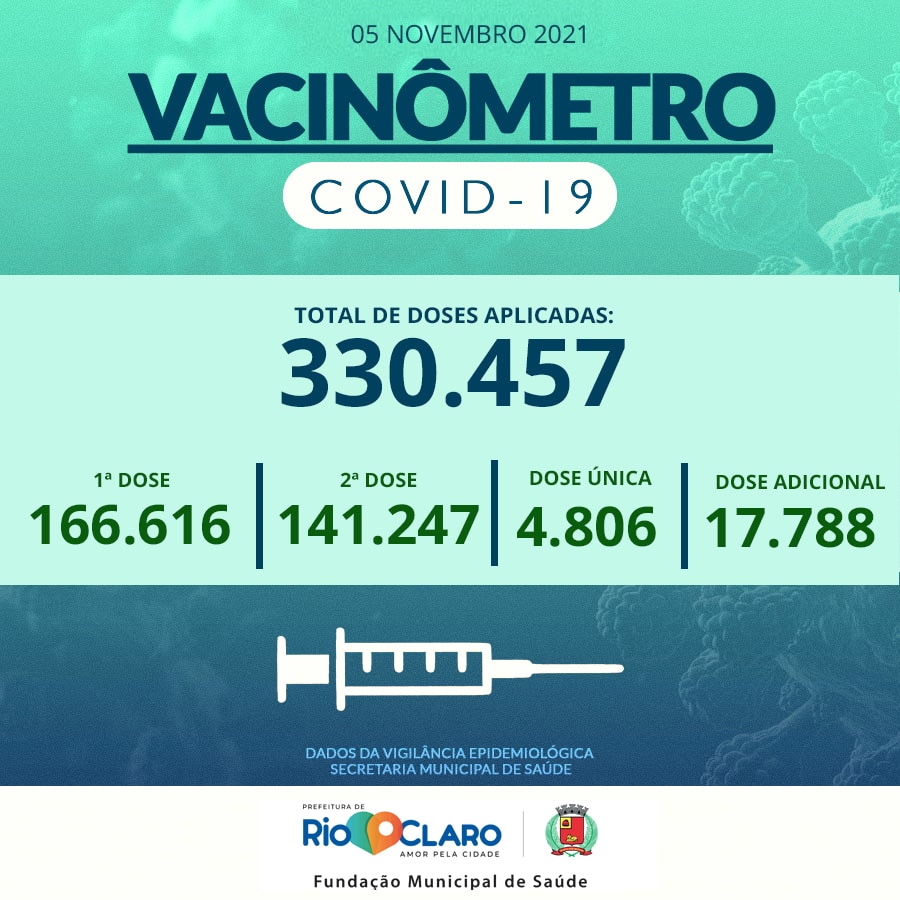 Até o momento, 146.053 pessoas tomaram as duas doses ou vacina de dose única, ou seja, 69,69% dos rio-clarenses. O total de doses aplicadas é de 330.457.