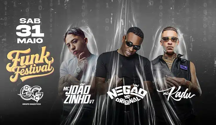 Acontece neste sábado (31), com abertura dos portões a partir das 22 horas, no Grupo Ginástico Rio-clarense, localizado na Rua 2, 941, no Centro da cidade, o Funk Festival, organizado e realizado pela ShowUp. A festa traz para a Cidade Azul os fenômenos do funk Negão MC Original, MC Joãozinho VT e MC Kadu. Só no Instagram, cada um dos músicos possuem mais de dois milhões de seguidores e ostentam, além de muitas músicas de sucesso, comentários de carinhos de seus fãs.