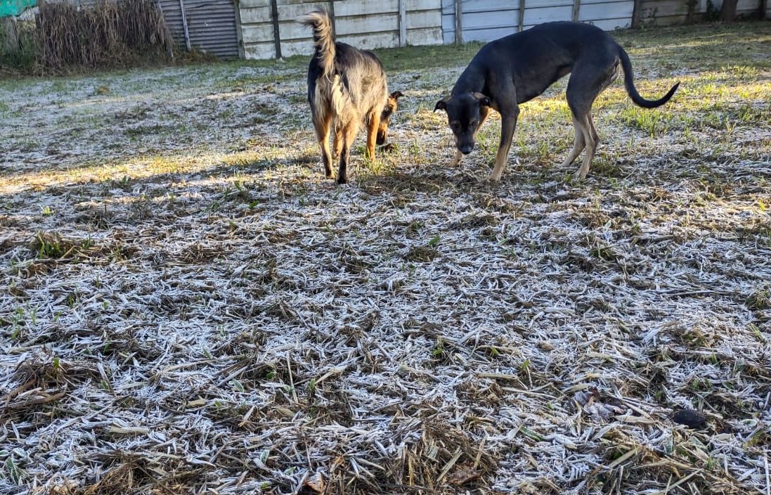 No Jardim das Palmeiras, o morador Cláudio, professor da Lion FC, registrou a geada num gramado da Rua 14 com Avenida 9.