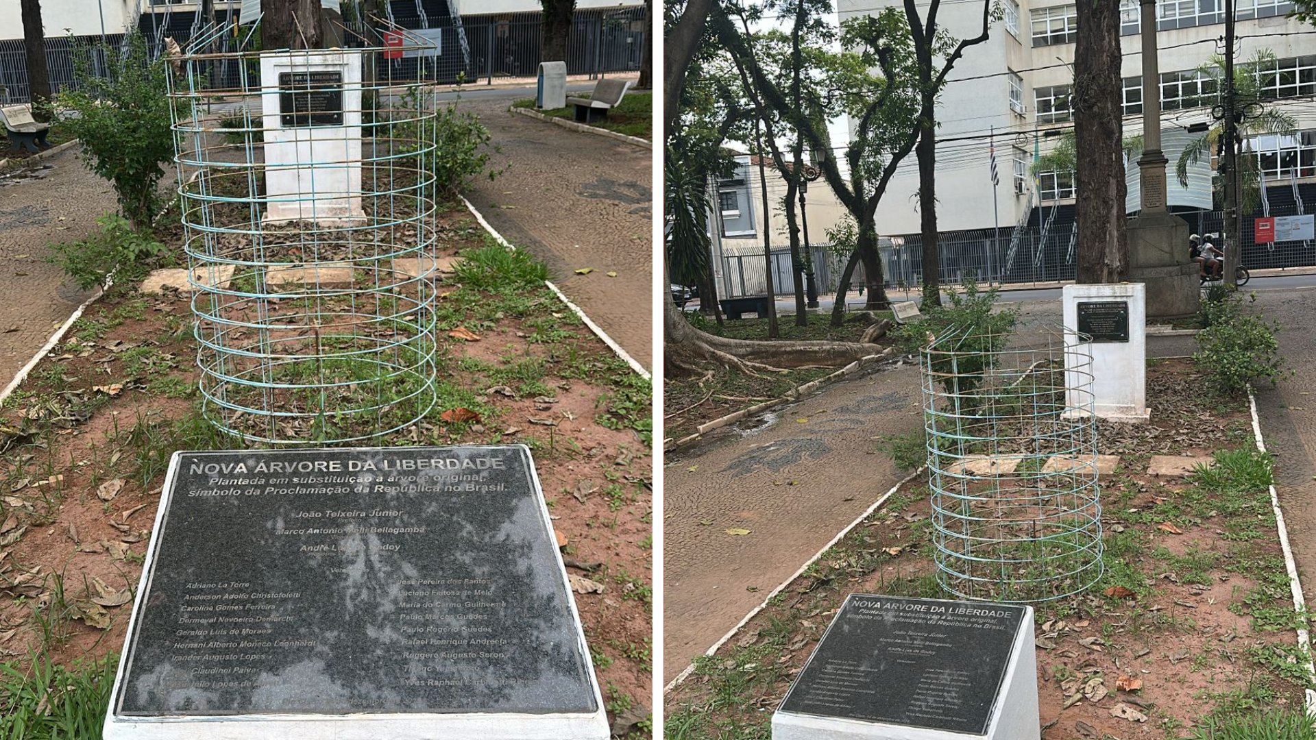 No entanto, na véspera deste feriado, a reportagem do JC flagrou que nem mesmo um galho da muda que havia sido plantada seis anos atrás restou na Praça da Liberdade, em frente ao Fórum. Apesar de uma estrutura ter sido implantada anos atrás para proteger o crescimento da árvore, nada sobrou por ali da vida verde, somente a tela de arame que a protegeu por algum tempo.