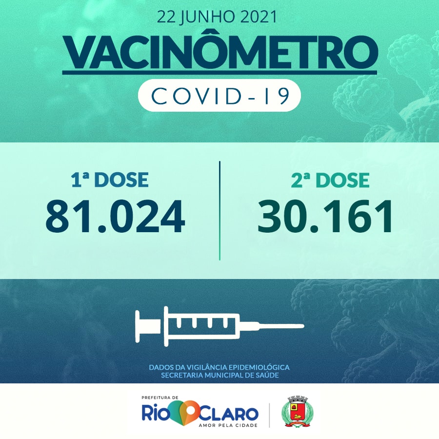 Em Rio Claro, 81.024 pessoas receberam ao menos uma dose de vacina contra a Covid-19, o que representa 38,95% da população. Os números foram divulgados nesta terça-feira (22) pela Secretaria de Saúde, que aponta que 30.161 pessoas receberam a segunda dose, ou seja, 14,49% dos rio-clarenses. Ao todo foram aplicadas 111.185 doses de vacina.