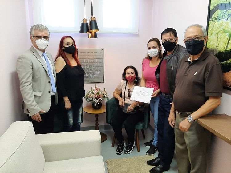 A família foi convidada a conhecer a Sala Rosa e descerrar a placa de homenagem. Em um momento de muita emoção, saudade e gratidão pela imensa generosidade, o provedor Sr. Eduardo de Moraes, agradeceu aos familiares de Aline. “A ideia de homenagear a Aline foi muito bem recebida por toda a diretoria. Em um momento atormentado em que estamos vivendo, com muitas perdas e com toda a correria, a família teve essa sensibilidade de transformar vidas nesse momento, assim é o que a Aline vai representar para a nossa equipe. Muito obrigada por vocês terem essa atitude, e que seja um exemplo para outras famílias, para que também transformem vidas”, diz.