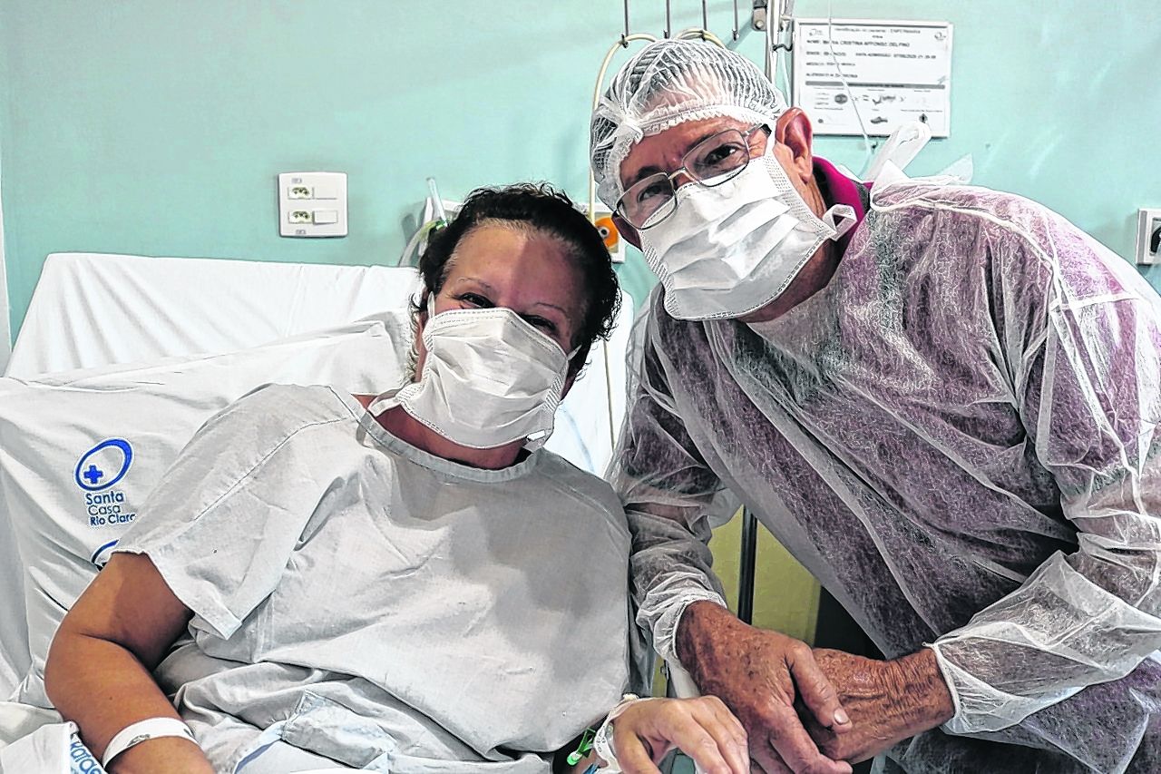 Paciente Maria Afonso Delfino recebe a visita do marido José Carlos