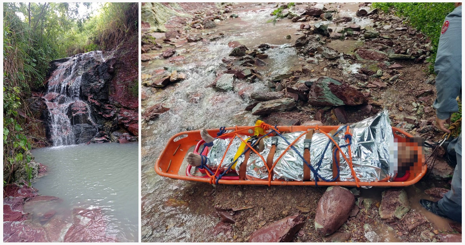 A equipe do Resgate foi a primeira que conseguiu encontrar e ter acesso a vítima que estava caída próximo a uma queda d’água de aproximadamente cinco metros. Foi constatado que o rapaz tinha uma contusão no joelho e uma luxação no ombro e por isso precisou ser imobilizado em uma prancha e ser levado até um local seguro. Para isso as equipes usaram técnicas de altura e outras práticas já que o local era de difícil acesso e com uma mata fechada. A vítima já tinha passado a noite no local e foi através dos bombeiros que conseguiu ser resgatado em segurança e levado para atendimento médico e recuperação.